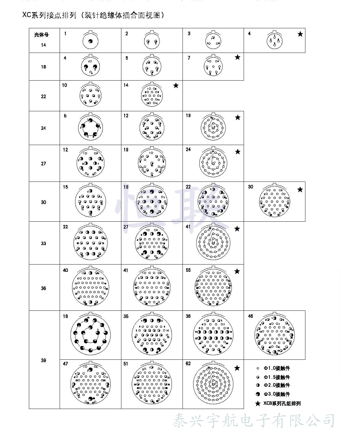 XC系列圓形電連接器( 航空插頭 )為低頻類電連接器。九種殼體號(hào);4種接觸件規(guī)格;32種孔位排列。從1孔到62孔。采用卡口式快速連接系統(tǒng),操作方便,連接可靠,耐振動(dòng),抗沖擊。五鍵槽定位,具有盲插和防誤插功能。高可靠的雙曲面線簧孔使連接器插拔柔和,接觸電阻小,工作可靠。插座共有五種結(jié)構(gòu)形式選用。符合國(guó)家軍用標(biāo)準(zhǔn)GJB2889。廣泛用于航天,航空,航海、鐵路、野戰(zhàn)通訊及各種儀器、儀表等設(shè)備中。