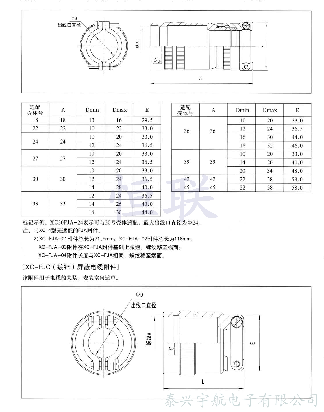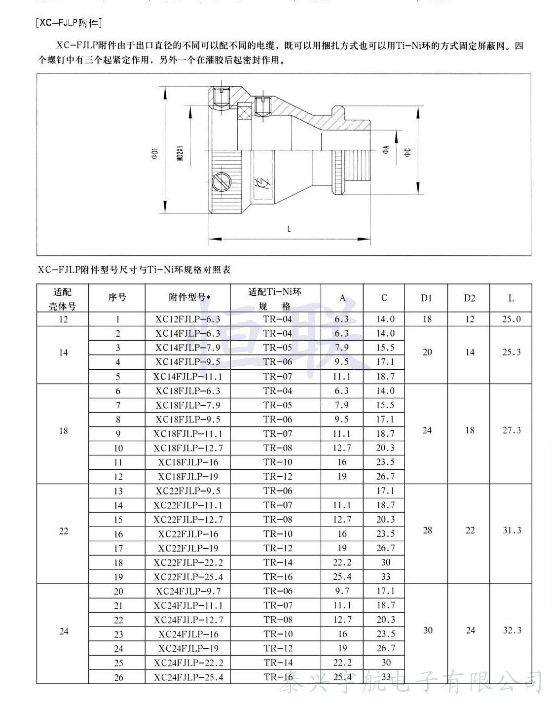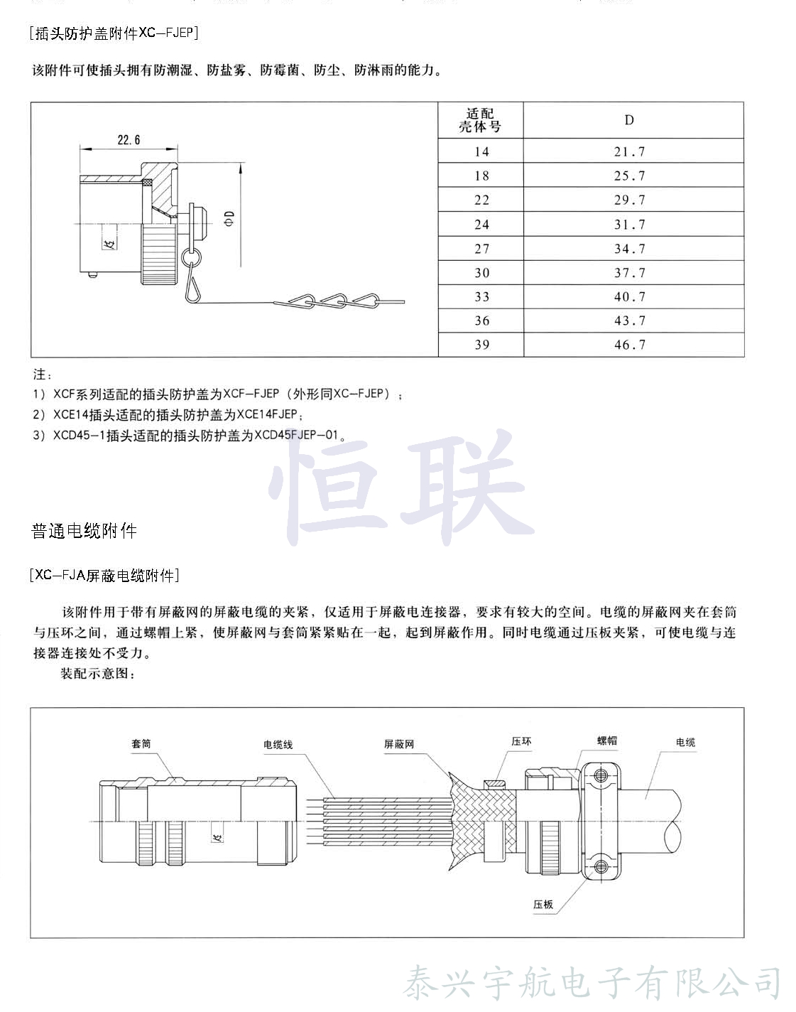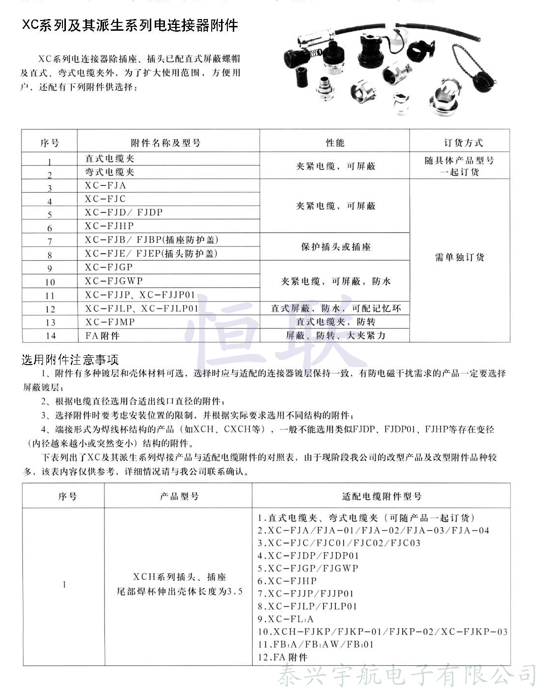 XC系列電連接器除插座、插頭已配直式屏蔽帽及直式彎式電纜夾外,為了擴(kuò)大XC系列電連接器的使用范圍,方便用戶,還配有下列專用附件,可供使用單位選擇。