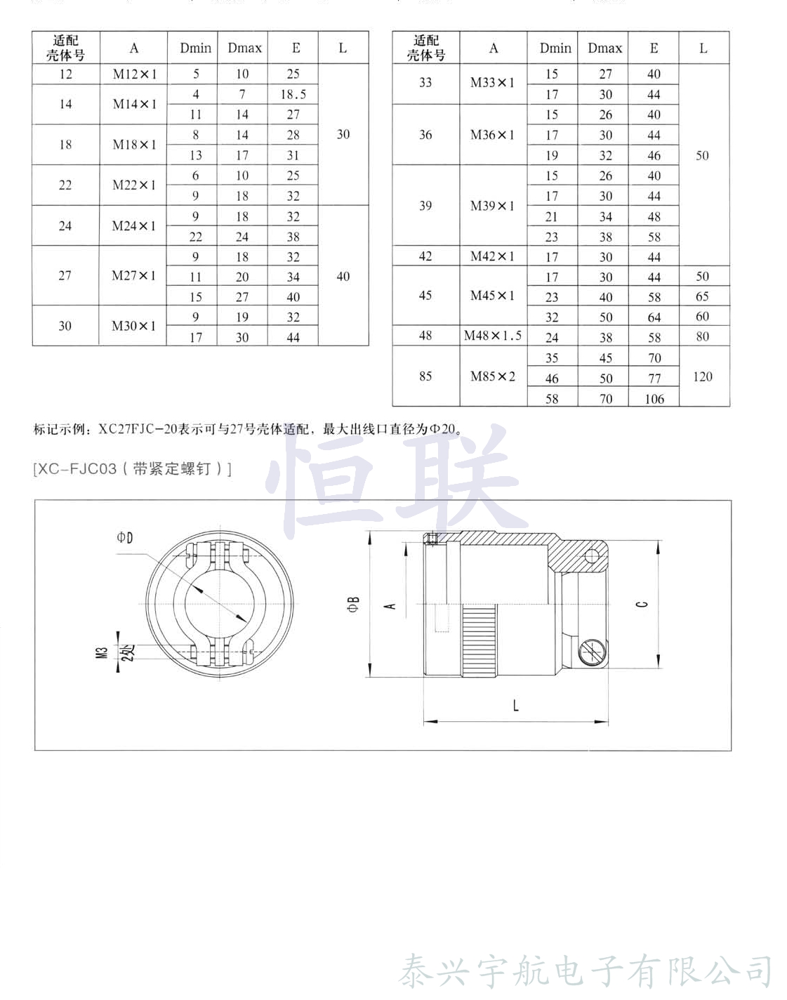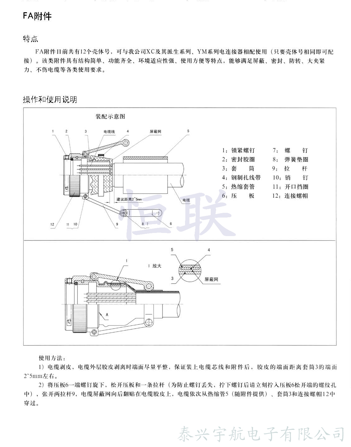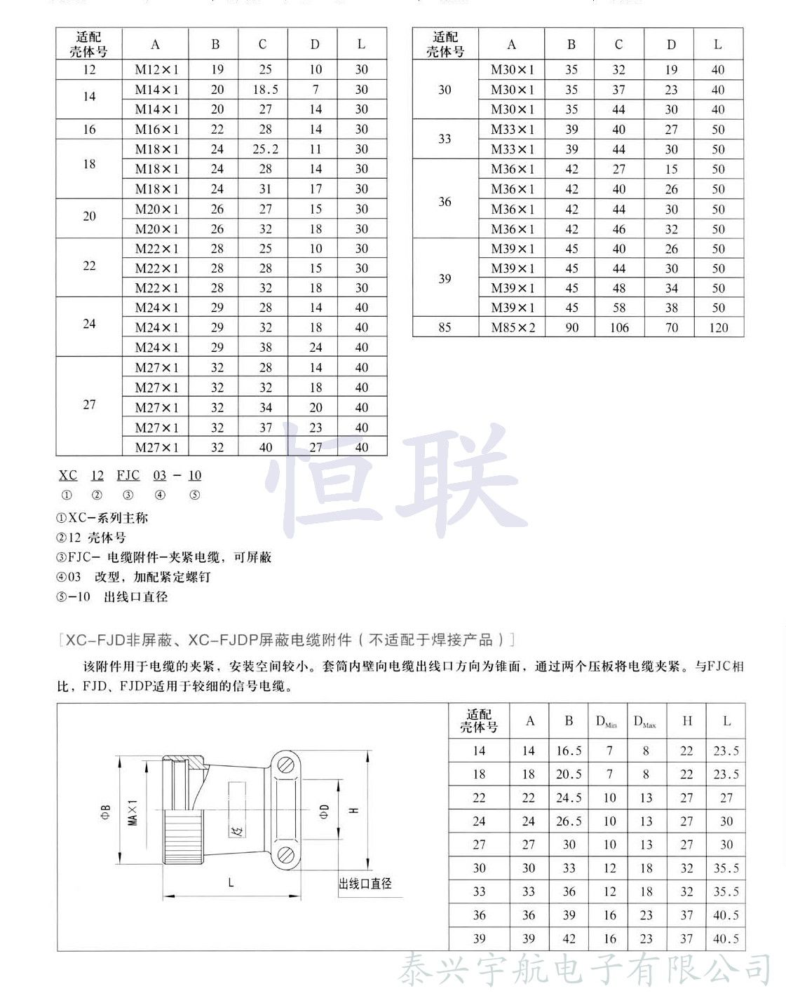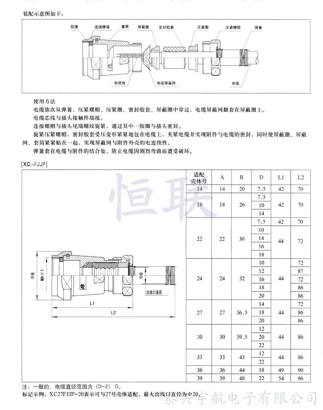 XC系列電連接器除插座、插頭已配直式屏蔽帽及直式彎式電纜夾外,為了擴(kuò)大XC系列電連接器的使用范圍,方便用戶,還配有下列專用附件,可供使用單位選擇。