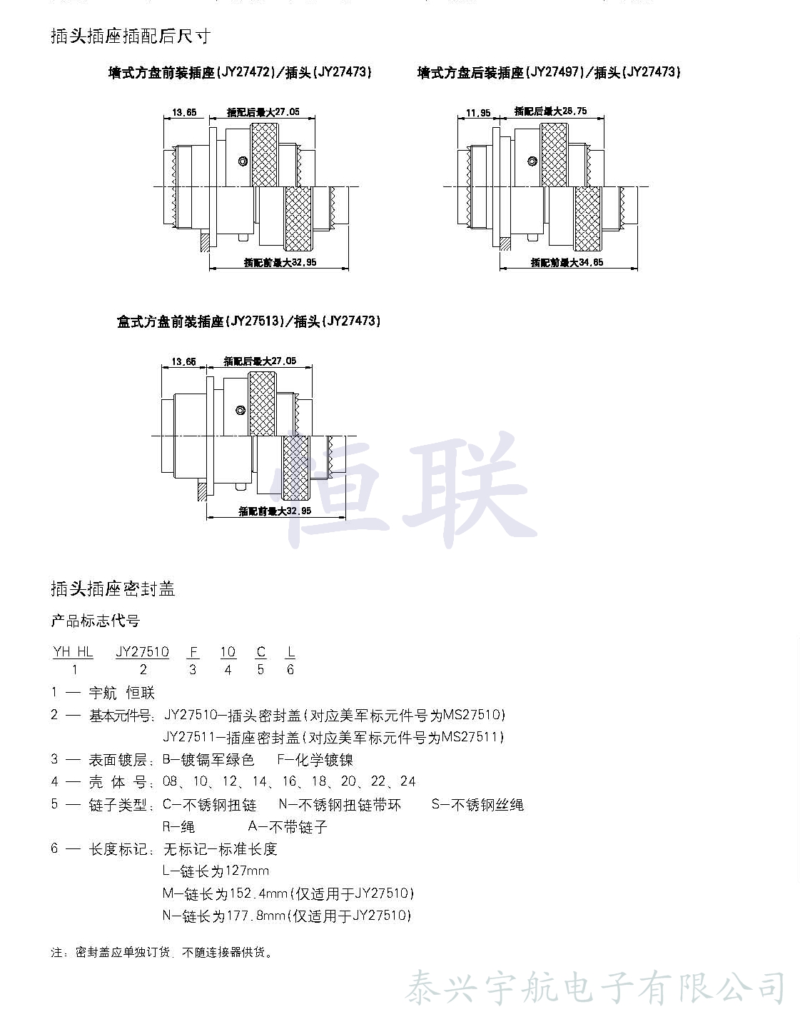* 符合GJB 599A (MIL-DTL-38999K)Ⅱ系列