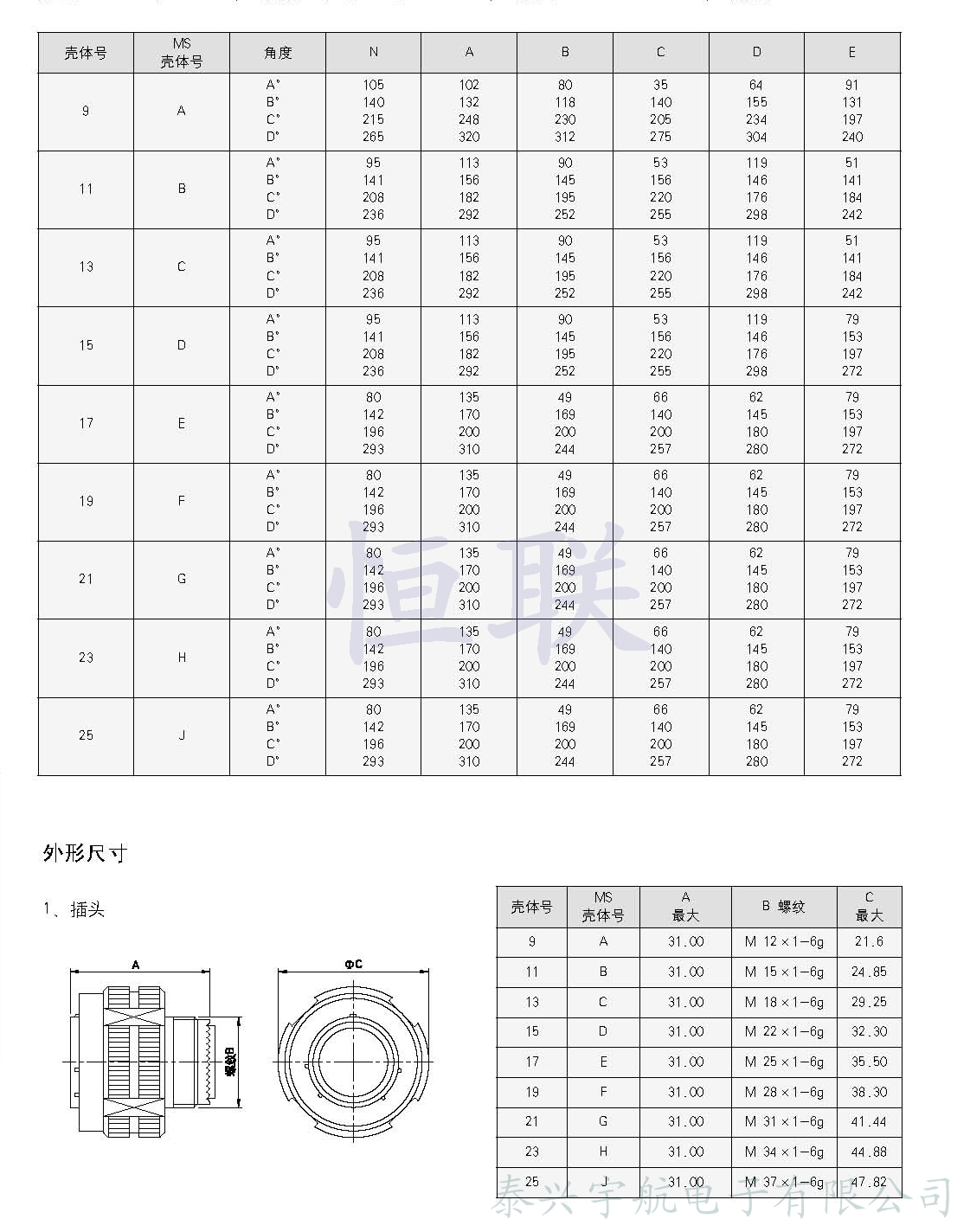 * 符合GJB599A(MIL-DTL-38999K)Ⅲ系列