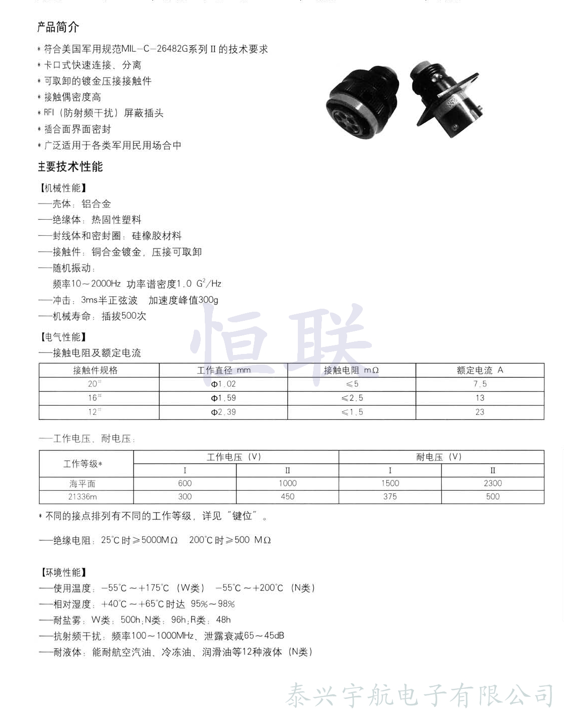 本系列產(chǎn)品完全符合美國軍用規(guī)范MIL-C-26482G(3)系列Ⅱ技術要求,并具有卡口式快速連接、分離的特點。本系列產(chǎn)品廣泛適用于航空、航天以及其它領域電子設備之間的電連接。