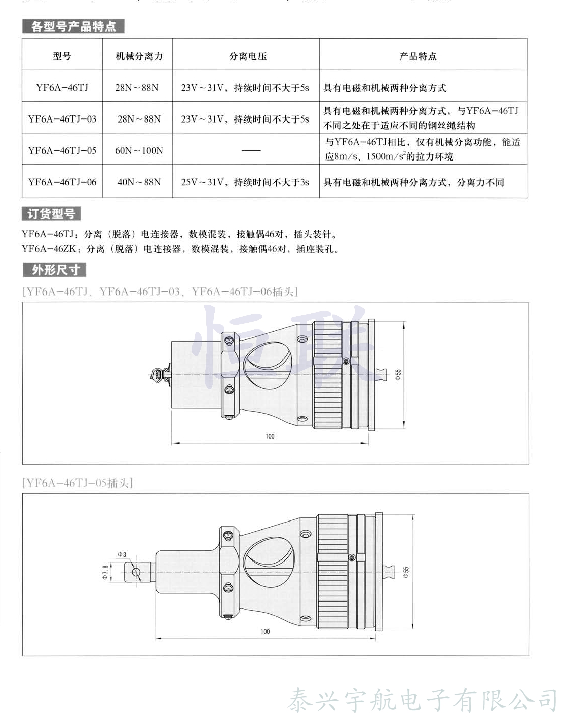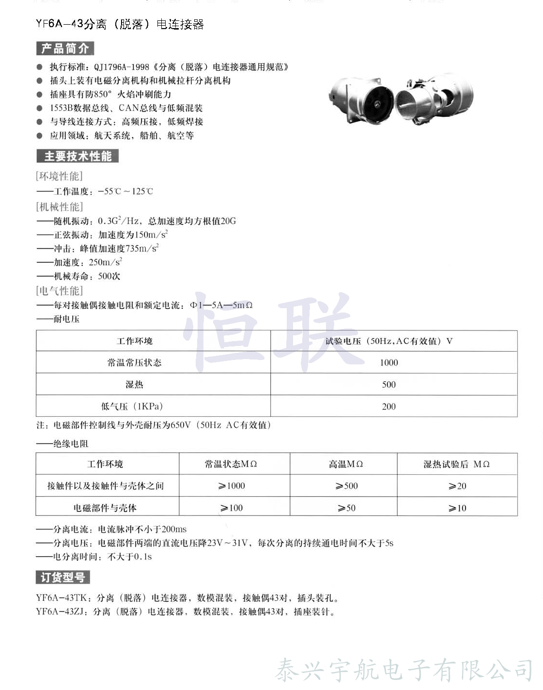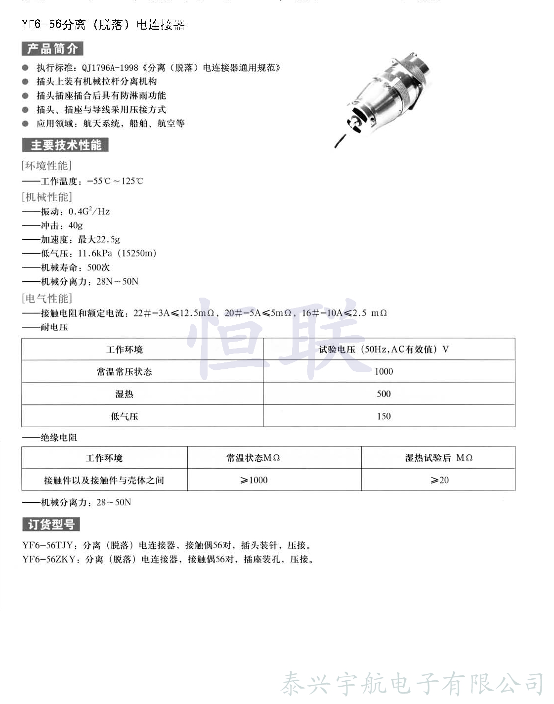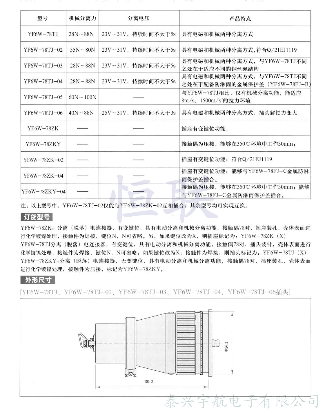 YF型圓形分離電連接器適用于具有小型化要求的戰(zhàn)略戰(zhàn)術(shù)武器系統(tǒng)、航天運載系統(tǒng)的級間電氣線路連接和系統(tǒng)與地面設(shè)備的電路連接,以及其他工業(yè)設(shè)備的電氣連接,并可做瞬間電磁分離和機械分離。