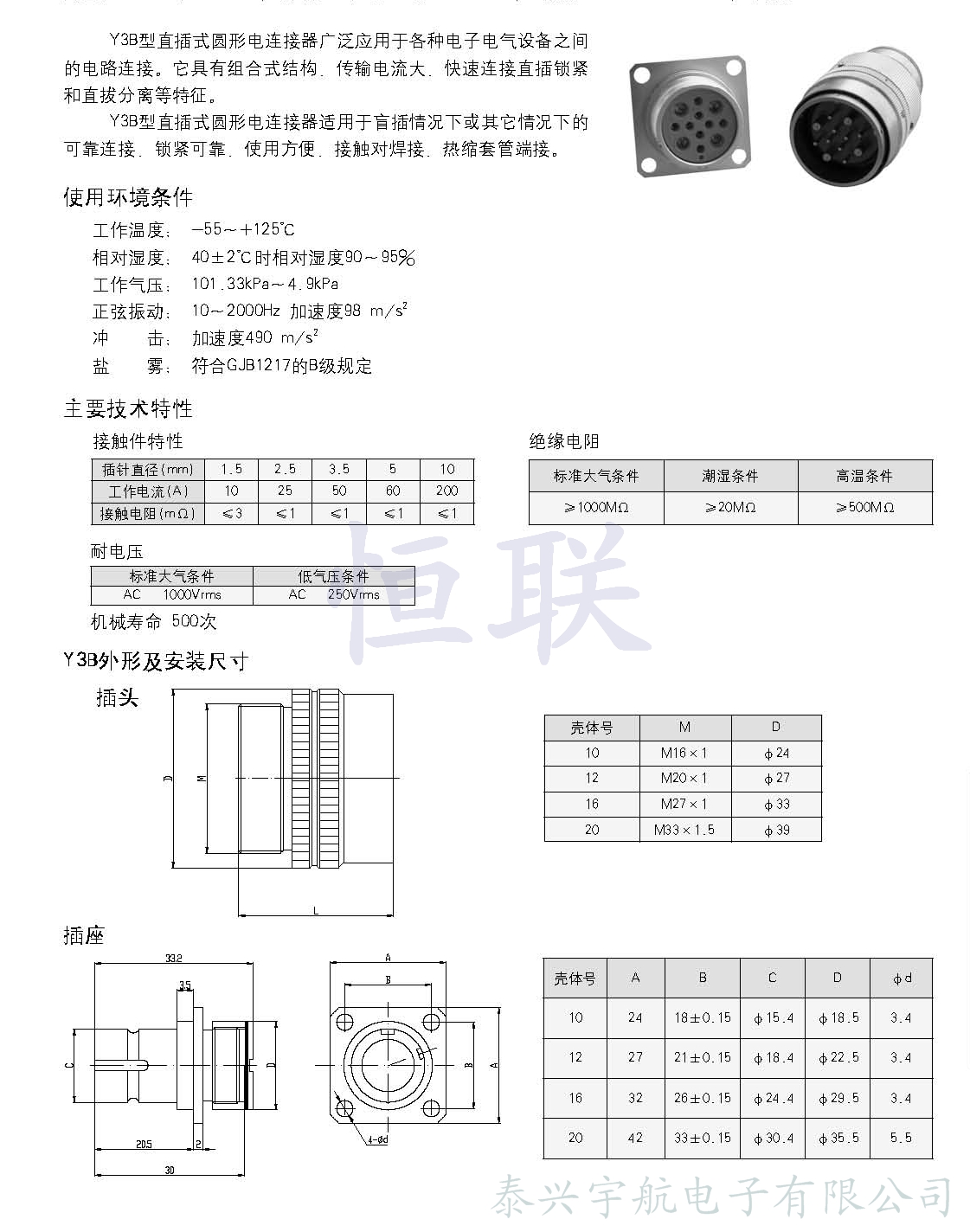 Y3B型直插式圓形電連接器廣泛應(yīng)用于各種電子電氣設(shè)備之間的電路連接。它具有組合式結(jié)構(gòu),傳輸電流大,快速連接直插鎖緊和直插分離等特征。